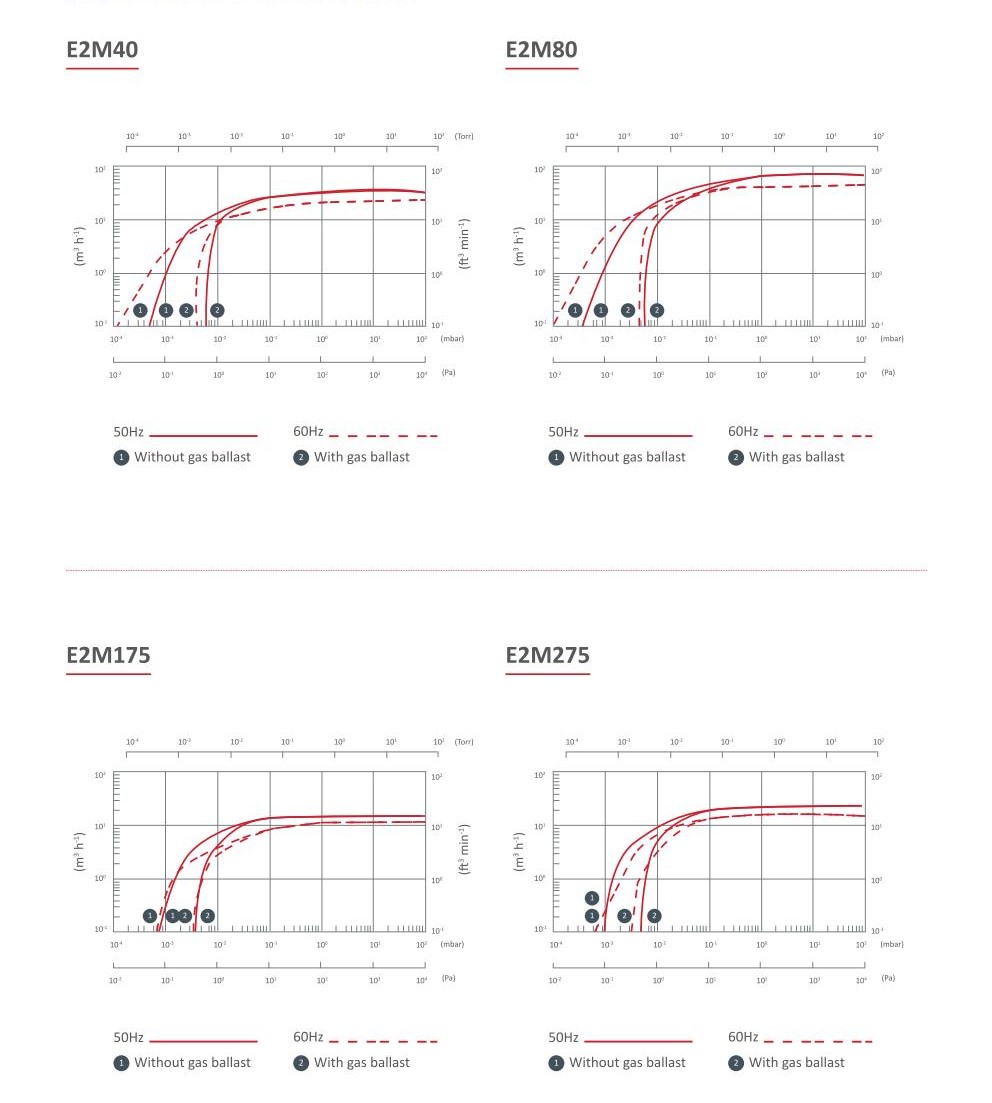 E2M Series เป็นปั๊มสุญญากาศสองขั้นตอน (Two-Stage Rotary Vane) โดดเด่นด้วยความทนทานและอายุการใช้งานยาวนานในอุตสาหกรรม มาพร้อมระบบ Forced Oil Lubrication ที่ช่วยให้หล่อลื่นชิ้นส่วนได้สม่ำเสมอแม้ในสภาวะความดันต่ำสุด โครงสร้างปั๊มติดตั้งวาล์วป้องกันการไหลย้อนกลับ (Inlet Isolation Valve) ป้องกันน้ำมันไหลย้อนกลับเมื่อหยุดเครื่อง มีระบบ Gas Ballast ปรับได้ เพิ่มความสามารถในการดูดไอระเหยได้มากขึ้น นอกจากนี้ยังมีรุ่นพิเศษที่รองรับงานไฮโดรคาร์บอน ออกซิเจนสูง (FX) การใช้งานในสภาพแวดล้อมที่มีการระเบิด (EX) และการทำงานร่วมกับสาร Azide (AZ)