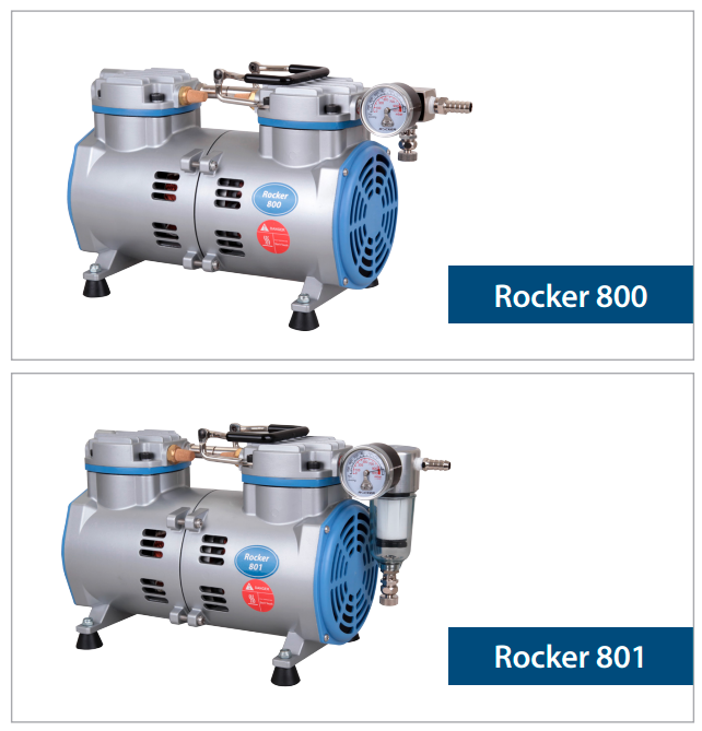 ปั๊มสุญญากาศ Rocker รุ่น 800 และ 801 เป็นปั๊มไม่ใช้น้ำมัน (Oil-Free) ขนาดใหญ่ แรงดูดสูง เหมาะสำหรับงานห้องปฏิบัติการที่ต้องการประสิทธิภาพต่อเนื่อง ปลอดภัย และดูแลรักษาง่าย