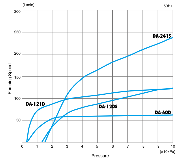 Model | Unit | DA-60D (50Hz) | DA-60D (60Hz) | DA-120S (50Hz) | DA-120S (60Hz) | DA-121DF (50Hz) | DA-121DF (60Hz) | DA-241SF (50Hz) | DA-241SF (60Hz) |